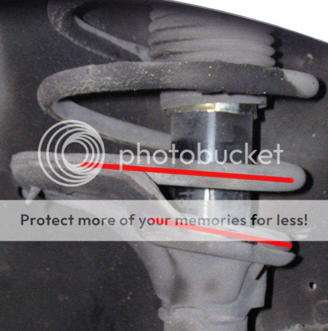 if you have a set of stock springs laying about not mounted on struts, please take a photo of the bottom end and post it up. There is a (very) small chance that the end is compressed by the strut, but I somehow doubt it.