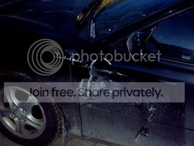 I think i may need a new door. there's a wrinkle that i highly doubt can be fixed, and it also shuts like sh1t now. gotta slam it pretty good, and i can feel that its shutting poorly. My rear fender's got a nice scratch all the way down it, and is also dented pretty good. the front fender has minor paint damage. Luckily we have foldable mirrors. that would have broken also....