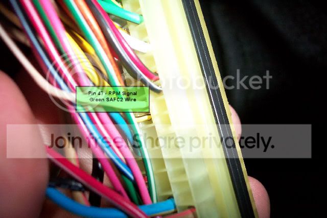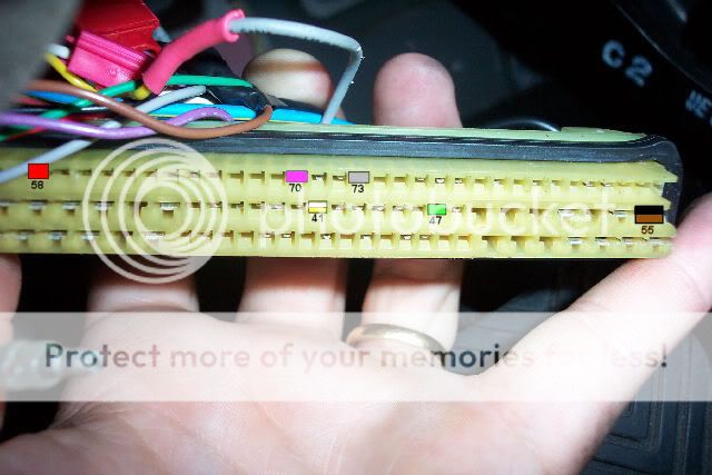 This install seems kind of intimidating since you are messing with the ECU wires, but it is not that bad. I did not get pictures of all the wires, but you should be able to figure them out by using the first picture anyways. Remember, look at the pin on the front and the pins around it then find the wire running to the pin. Alot of the pins have no wires connected to them so it makes it easy to navigate the back of the plug.