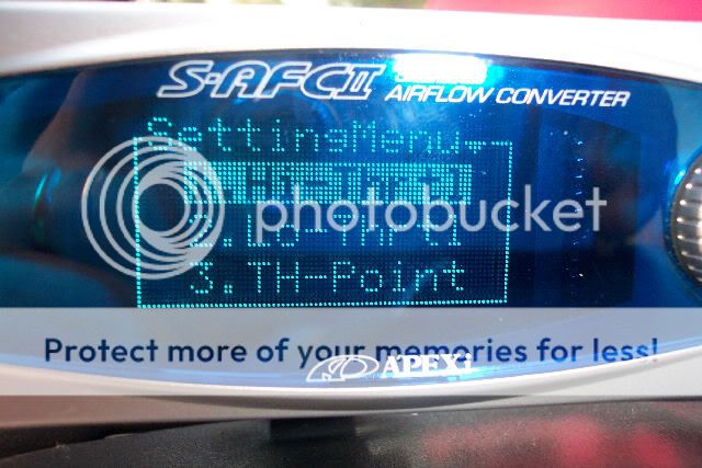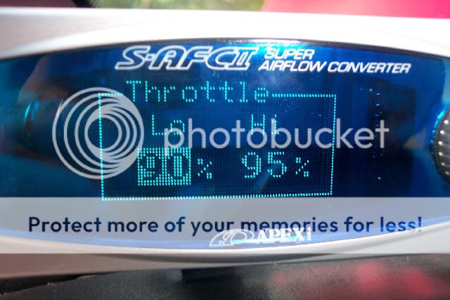 https://img.photobucket.com/albums/v...ll/THPoint.jpg Select 90 for low and 95 for high: https://img.photobucket.com/albums/v...l/THPoint2.jpg Now go to the Sensor Check in the Settings Menu. It should look like this without the throttle being pressed down. https://img.photobucket.com/albums/v...ChkLowThrt.jpg With the throttle on full it should look like this: https://img.photobucket.com/albums/v...hkHighThrt.jpg Knock Sensor Setup: You need to configure it to detect the knocks. To do that you go to the setting menu, Knock Setting. Have the car at idle and all warmed up. You should see your RPMS and a Knock reading, scroll down to the 1st setting and press the throttle to get it stable between 1300 and 1600 RPMS, once stable press the controller to the right, it will set the knock meter. Do the same thing for the second setting but have the car reved to around 3500. That's the basics to getting this setup. If you see an error please let me know. You will need to set the NE points to something our car will use, I only set 8 of them on mine. NE1 1000 NE2 2000 NE3 3000 NE4 4000 NE5 5000 NE6 5500 NE7 6000 NE8 6500 I didn't set anything for the Low Throttle Correction Map. For the high map I set it as follows: 1000 0% 2000 +1% 3000 -3% 4000 -6% 5000 -8% 5500 -9% 6000 -11% 6500 -14% These settings may not work for you. I set them today and the car seemed to run better while I was driving full throttle. I am not responsible if you blow yours up. |