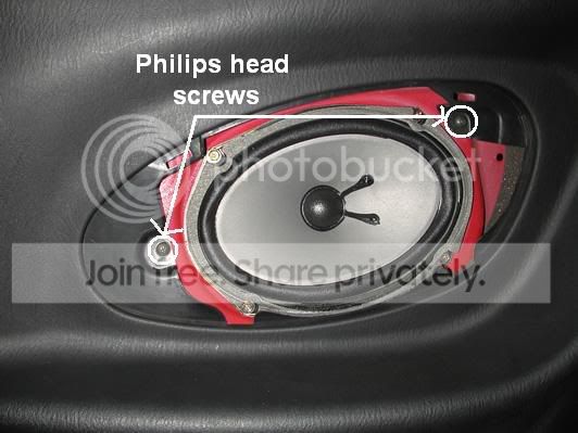 4. Take off the back speaker covers, they just pop off(use a flat bladed screwdriver). Remove the 2 screw on either side of the speakers.