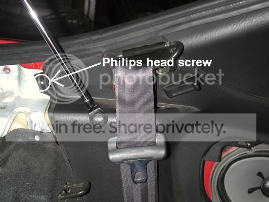 6. Next remove the 5 screws that are holding the mount for the cargo cover, and remove the Philips screw behind it that's holding the quarter panel down.