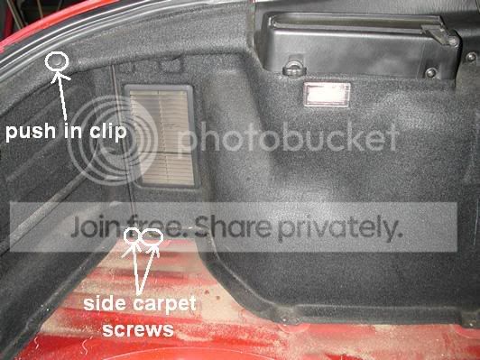 7. Remove the screws, and push in clip that's holding down the side carpet, this gives you more room to work with.