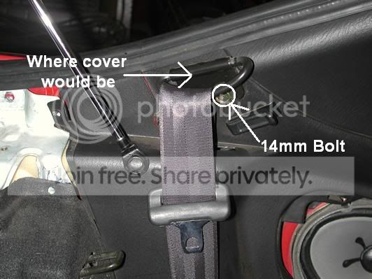 9. Remove the cover that's over the seat belt hook, and take out the bolt(14mm).
