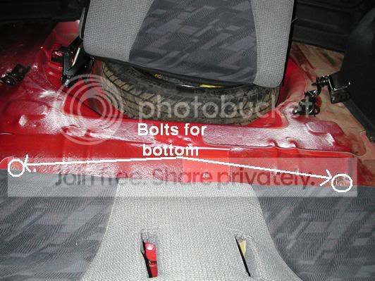 While I had everything out I took out the hoops/brackets the seats fold up and lock to. It's 2 12mm(I think) bolts that are easy enough to see. Sorry no pic for this.