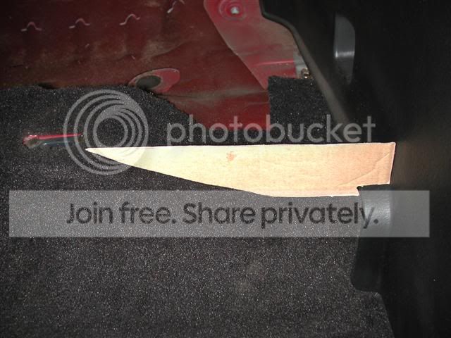 14. Trace the cut out on to the plywood(so that you're cutting on what would be the sides). Be careful you don't want to have 2 right hand sides or vise versa wink1.gif. Cut along the trace and test fit it, carefully or you WILL scratch the crap out of you're quarter panels. Trim as needed.