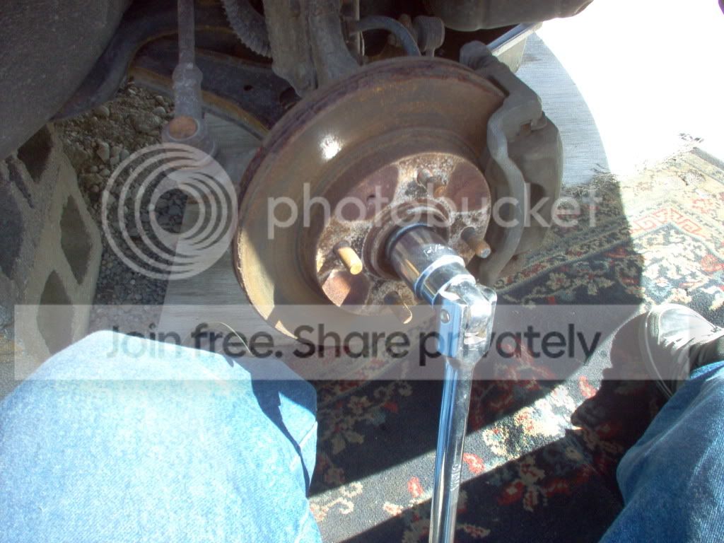 5.) take your 1 1/4 socket an put it on your spindle nut and then slide your cheater bar over the breaker bar like so
