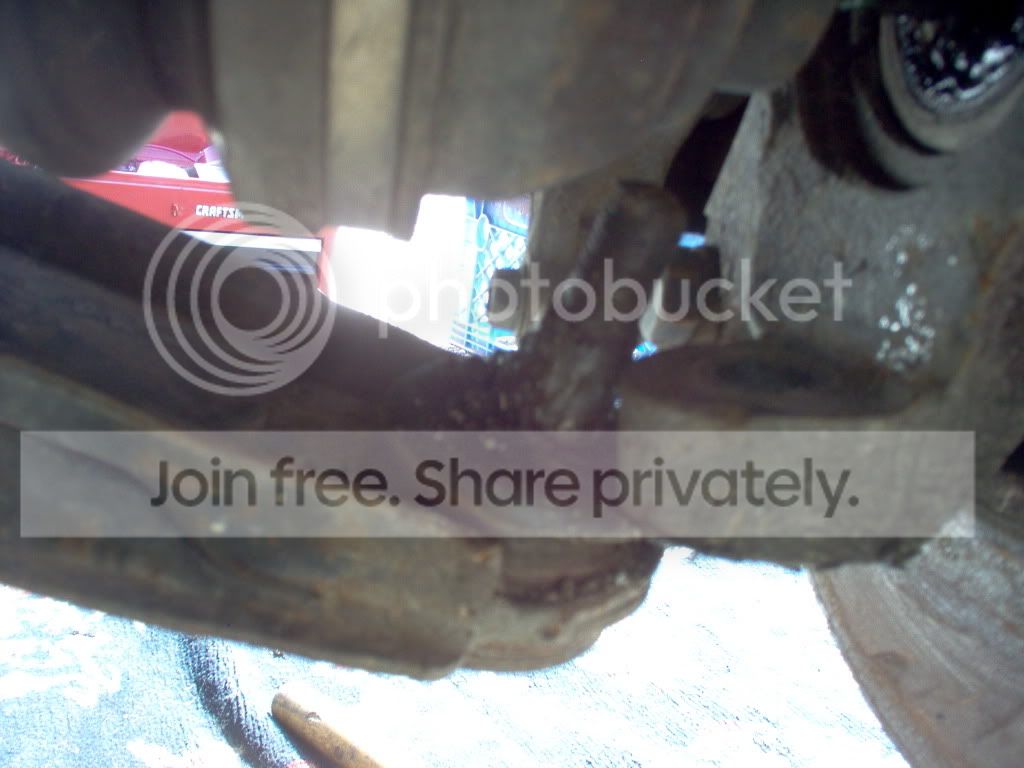 8.) take your pickle fork and insert it between the boot on your ball joint and your lower control arm. hit it with your hammer till it pops loose but make sure you dont peirce your boot on the ball joint or youll need a new one of those.