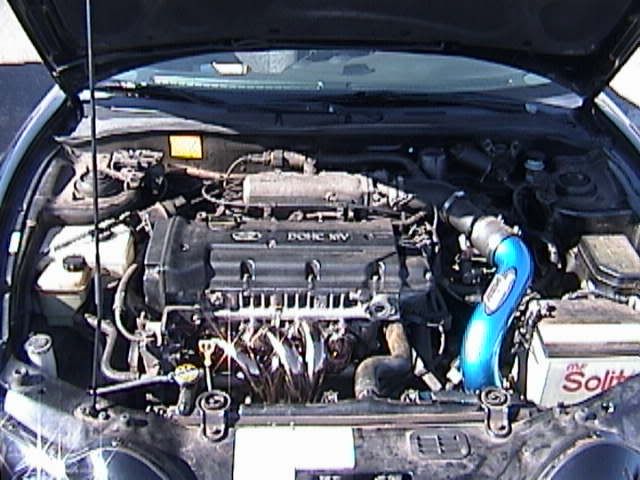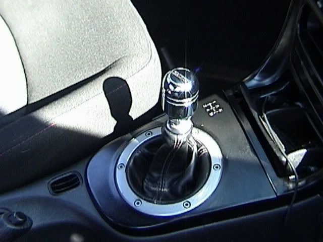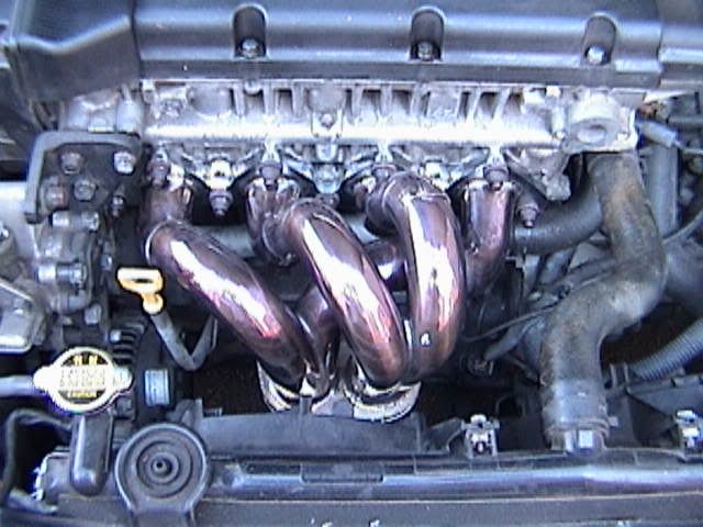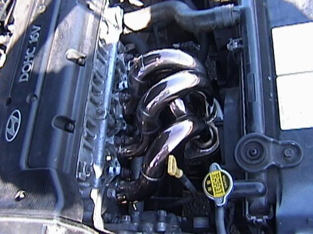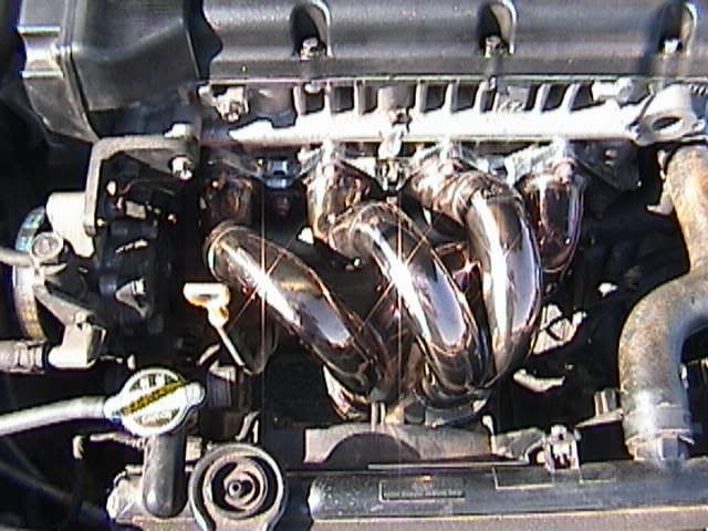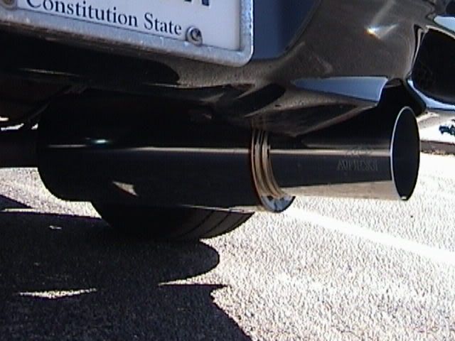 Yea the exaust is the one that rick was selling its an apexi N1 exaust. The short shifter is the advanced from kspec. To give you an idea on how short the shift is compaired to a stock shifter, my 4th gear now is basically where my netural use to be. The exaust is awsome and ended up fitting perfect. When the car is at idol the exaust is very quiet but when I hit the gas not only can i feel alot more power i get a very deep tone from it. Just today alone i got aton of looks w/ my new exaust and i am very happy with it. The headers were a little bit of a challange but were worth every bit of it. Not only do they look great the exaust/header combo gave me very good gains. The header flange did hit the fan which caused some melting and burning of the fan. After trimming some of the fan away i had no other problems with it. I like i said before the only other troubles i had with the headers where i didn't know that i had to remove a part off the block which held one of the belts in place and had to cut down one of the studs in the block to get the headers on all the way. After figuring out how to do that it was all easy after that.