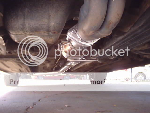 Back when I installed my header the place where I got it done put in a ball flange instead of a flex pipe. That was able to shorten the length needed and thus made it so I didn't need to extend my O2 wire. So how it goes is header to ball flange to highflow cat to O2 sensor. Here are a couple pics that I have. If you want I can get better ones this weekend since I am going to do my brakes. 80,000 on stock brake pads and still meat left on them wink1.gif.