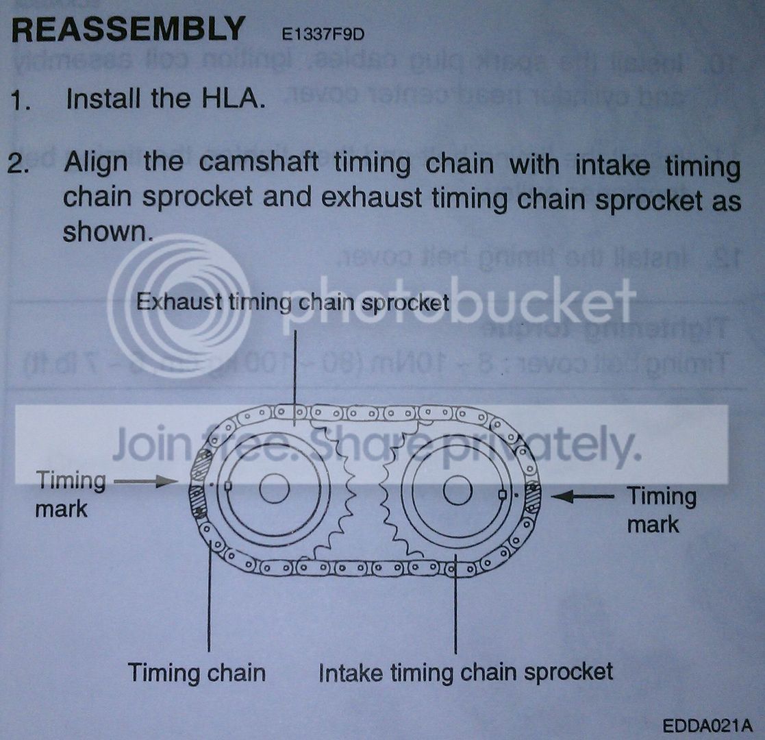 So I need to know how to time the intake and exhaust cams by the chain. I need a diagram and walkthrough. If the crank and cam by timing belt are exactly at 1 and 12. Were do the marks the two other sprocket get aligned? And does the intake cam rod only align with the sporckets one way?