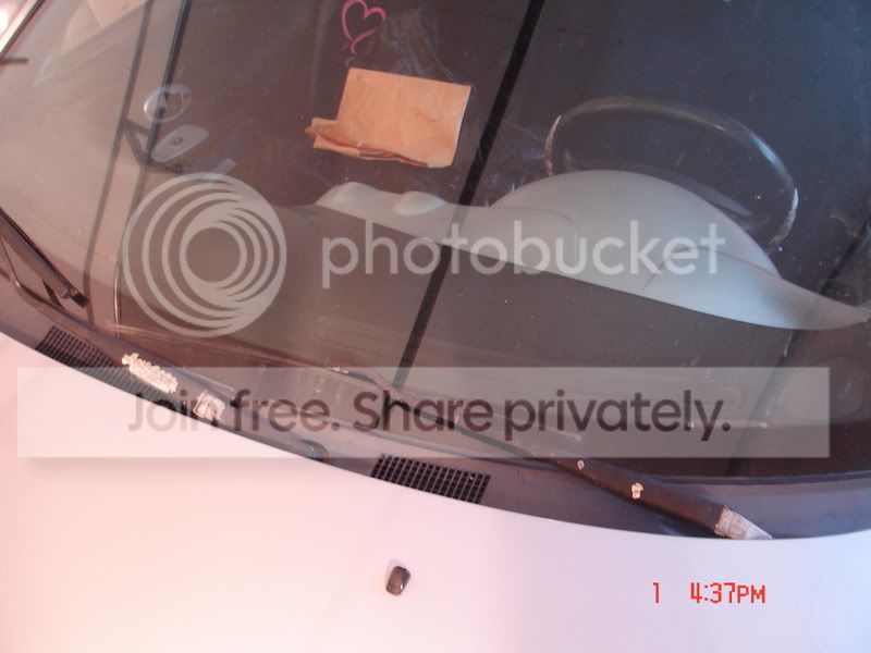I was just so mad at that rusted nut on my exhaust, and I can't afford to buy a new dremel till I get paid.. so I was glancing around and noticed the spots on the wiper arms where the paint had flaked away.. and a can of black spray paint on the floor.
