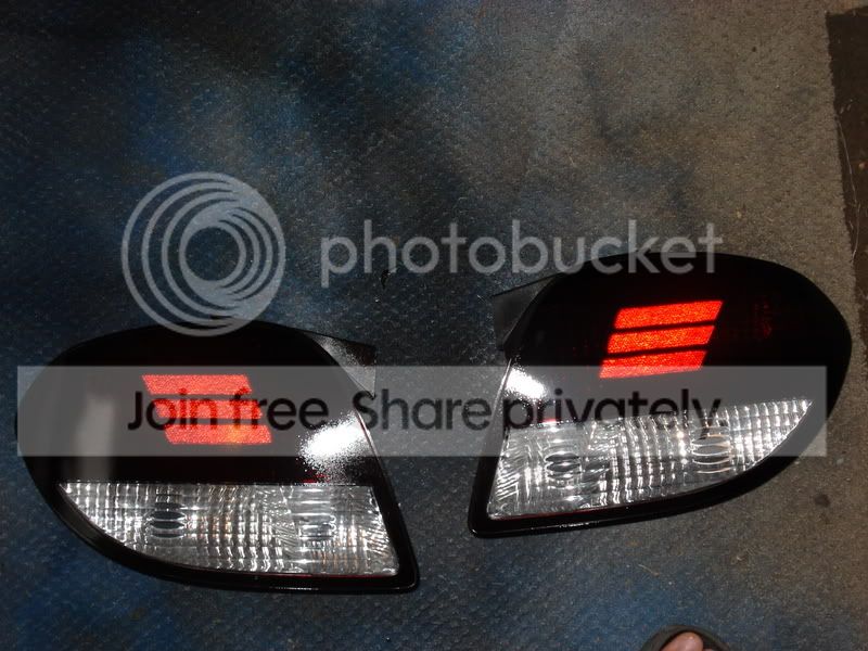 I just put on some black euro tails and decided to finally do what iv been thinkin about with my stock tail lights. Took some nite shades and some clear coat and came up with this....