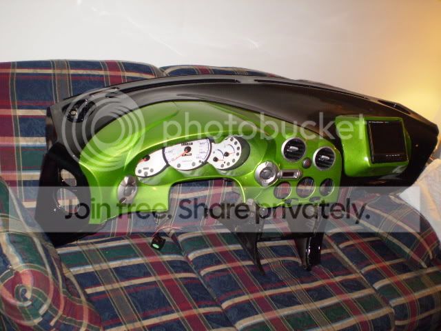 I would go with the black with green in the clear coat, or maybe black with that green going in a stripe ( or a double stripe) from the front bumper over the roof to the back bumper. By the way what kind of paint did you use for your dash?