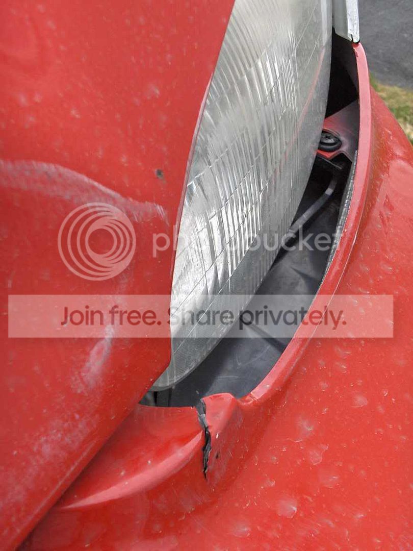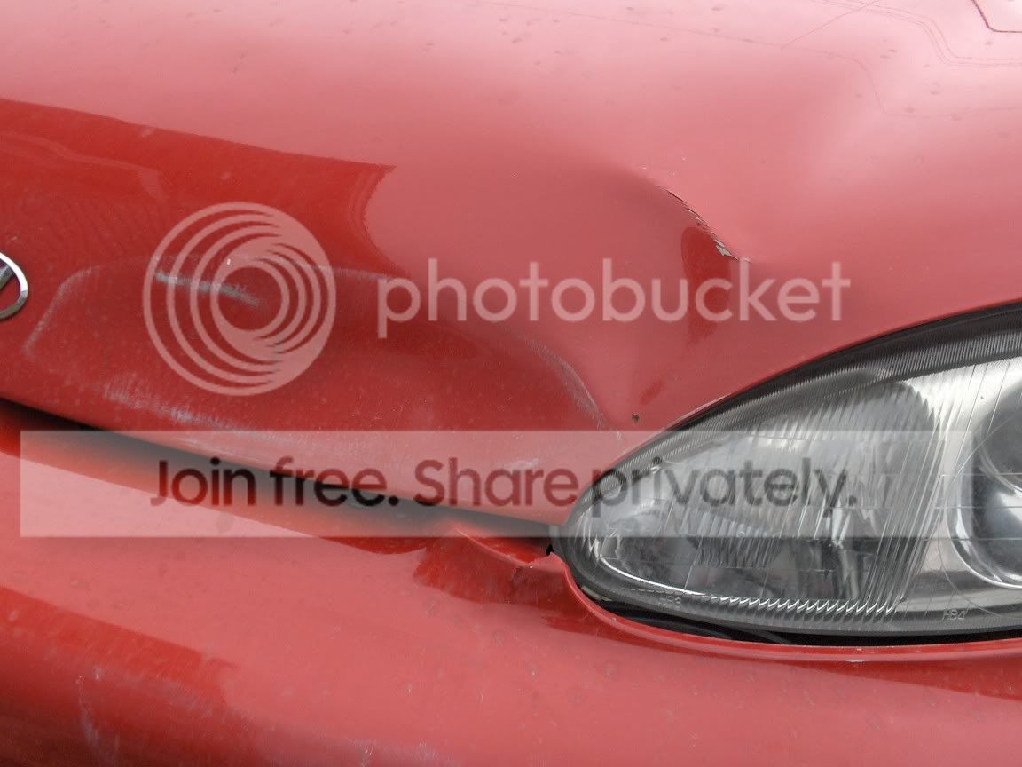 I know its possible to use bumper fill on that crack and about 80% of the white scrapes on my bumper will buff out. But then again, ive been looking at the Flyryde Type S bumper anyway. Also, i just plan to push my headlight and bracket the plastic in place. As for my hood, you can see that it crumpled just above the drivers side headlight, so its garbage to me. So i was thinking: