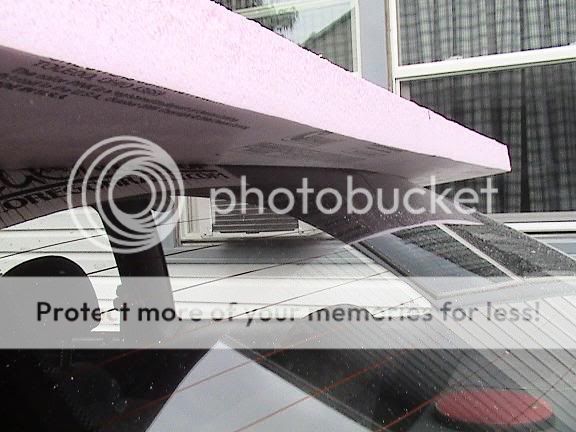 As for the foam, it is the pink foam insulation you can get from Home Depot. I used 2" and 1" to get a 3" workable shape. I also cut the foam into blocks to help with the contour a little. I did it while it was on the car so I could see the shape as I was sculpting it for best angle off the roof for air flow.