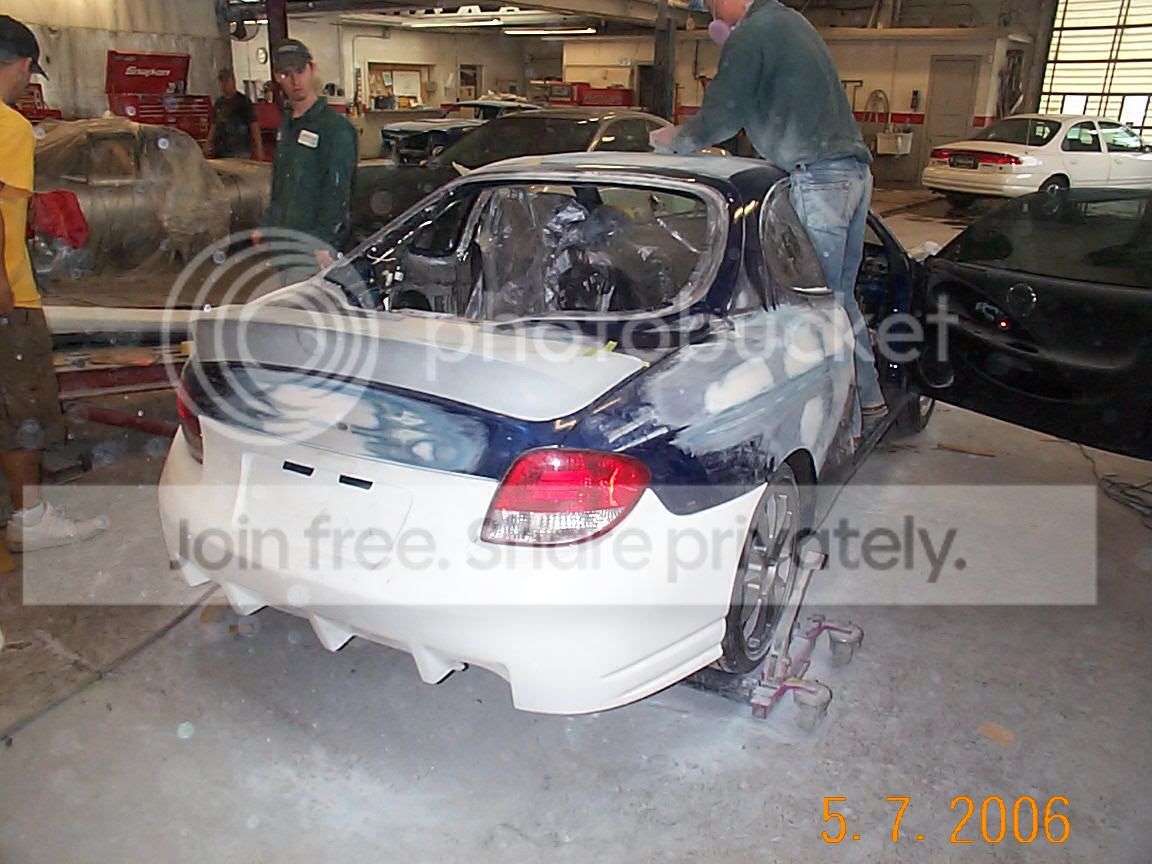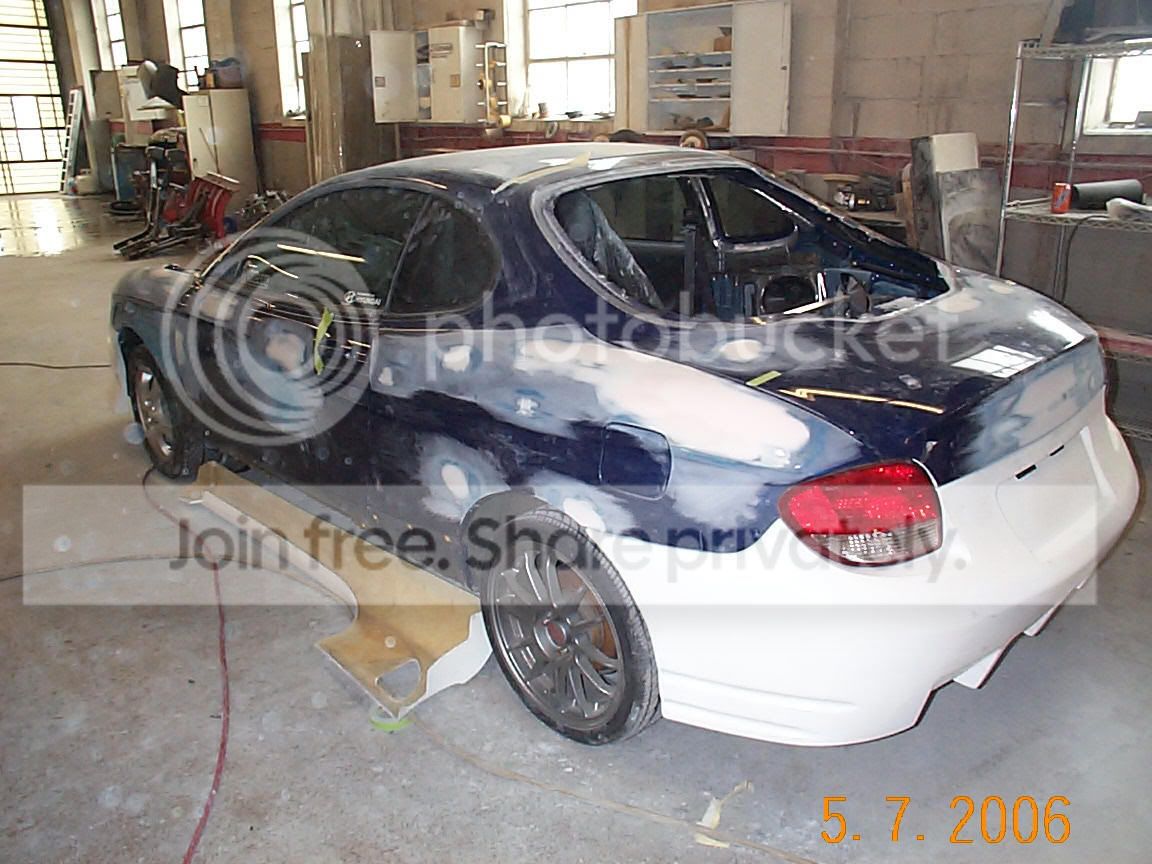 Well, some of you may remember I had some hail damage on the tib a few weeks ago. I took it into the body shop friday and i stopped by today to see the progress because they were having problems fitting the side skirts. Apparently they are to short and didnt want to fit right in the back. i talked to the body guy and we figured out how he was going to fit them without doing fiberglass work. the kit is not that great of a fit (cuda2 front and back, cuda1 sides) the front is really close but the back is a little to tight around the tails and like i said, the sides arent that great either. overall, im happy with how it fits and i think it looks really nice. sorry if the pics turn out to big. im not sure how to change them. heres some pics: