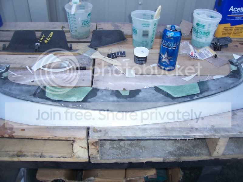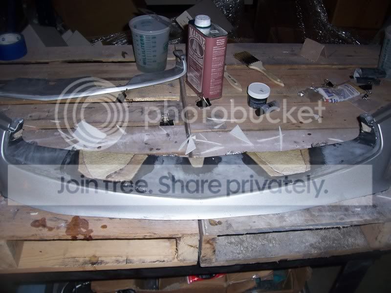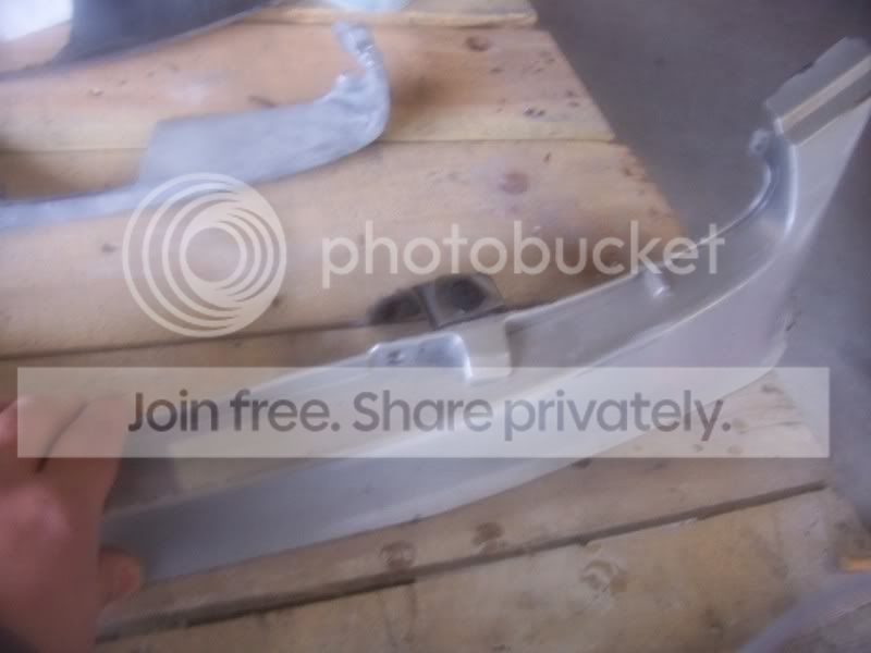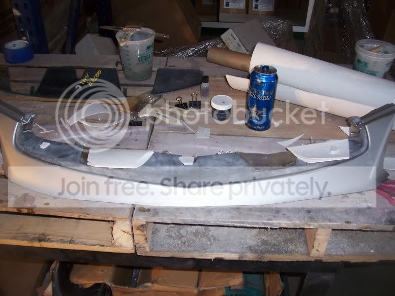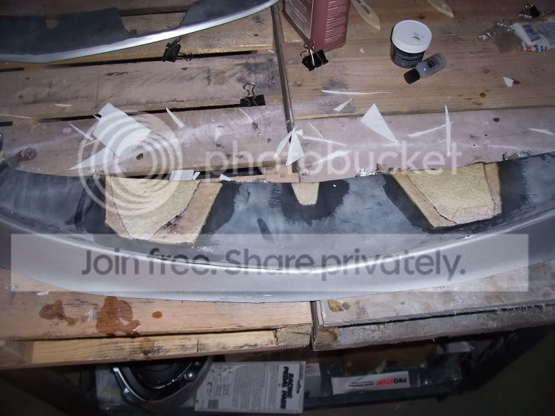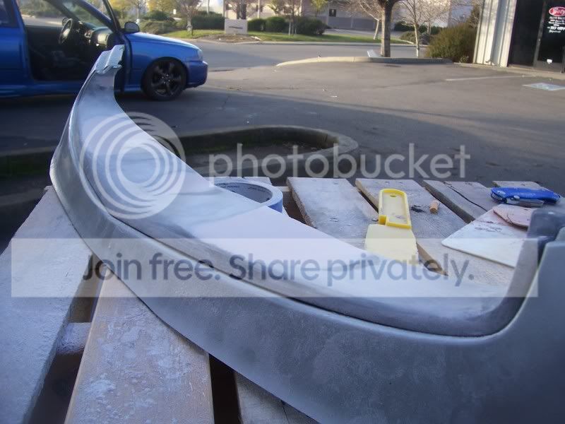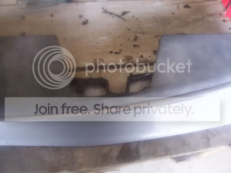 Finally got some good free time to get stuff done. The front lip is completely sanded down past all the paint both inside an out but is still in need of the wet sanding process. I got the second grill cut out and both grills sanded down to the plastic and ready for fiberglass. I only got the bottom base placed on one then washed my car an called it a day. Here are some pics of the work and also pics of what needs to be deleted on the top of the bumper for my piece to fit. Sorry some of the pics are crap.