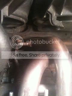 here is my down pipe i circled were the O2 sensore is i know it before that cat but thats what i have to fix im flipping it around so its after the cat. i did have it like this and it still through a CEL