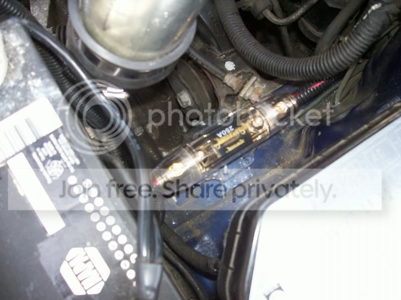 so now with this massive guy it wont blow unless there is an actual short in the line. and at the rate i'm going i'm gonna need to upgrade the wire here soon enough. on the up side though my guy at the shop hooked it up FAT AS HELL on the price. it was on the shelf for bout 35 bucks for holder and fuse and he hooked it up for 10 bucks. i mean thats bout like 66% off and you cant be too mad about that fing02.gif
