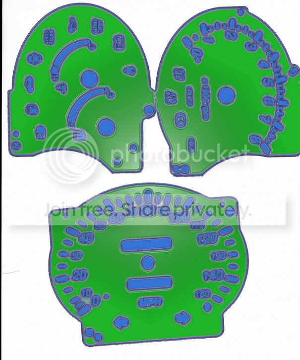 you have to set the thing into two layers. one will have all black and whatever color numbers. the other layer will have whatever color the gauge faces will be. if the black on the transparency doesnt block the light enough, ill stick a peice of photopaper on the back too.
