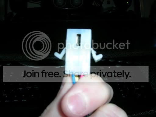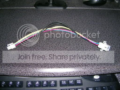 anywho, here is the opus to panel part of my power cable. the left side is the connector for the opus, and the right side is the female part of a panel mount molex kit(or whatever they want to call it) i bought from radioshack: