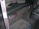 since i wont have the stock cupholders anymore, i mounted some to the door panel. bought these off ebay for like 5 bucks each and they work great. i had originally planned on putting them right behind the center console and underneath the rear seat, but the self tapping screws i had werent long enough. this spot is definately more accessible to the front seats as well. you can also get a glimpse of where my front crossovers are mounted.