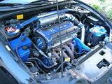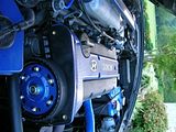 random shot of some under the hood stuff ive done. replaced timing belt, idler and tensioner pulleys, water pump. put in FAL fans. painted the PS and coolant resevoirs. swapped out the stock crank, ps, and water pulleys, along with the stock cam gear for a pretty obx adjustable one.