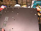 those 2 sets of 4 screws are not originally part of the case. my anal retentiveness made me want to do away with anything that is not needed, and make it completely removeable from the car without touching a screw. i fit the opus 120w power supply in the case, and mounted the cf card reader directly to the bottom of the case. originally the cf card reader is mounted underneath the power supply that came with the case, which i got rid of.