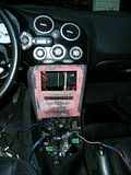 finished molding on my carputer junk. im kind of dissapointed in the outcome, but it will do for now. im in a mad dash to get stuff done before i head off to school. there are some problems with the paint because i rushed it and also because a couple bugs landed in it when it was wet, but it really doesnt look too bad. i also really skimped on the sanding so it is wavy hear and there. that green bondo stuff was used for this. gel i think it is...
