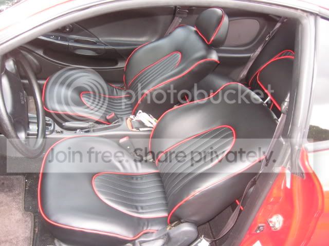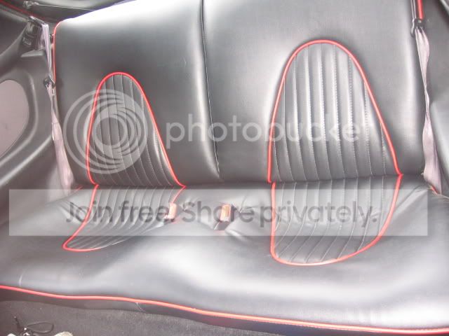 Alright just got my seats back from a shop in town. They do all kinds of custom work. Decided to take my seats in there and I picked out black leather with red piping. They have all kinds of colors. They were doing this model-t and it had mystic seats, but anyways just figured I would post up some pics of them finished. The pics aren't great I was in a hurry.