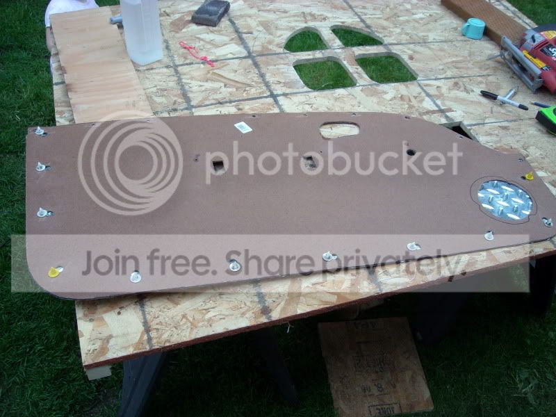 I had to make a new panel piece and traced and cut out a new tempered hardboard. This pic is of the new piece finished. I have to