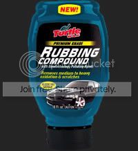 This is what I use. It's newer then the can variety. But you can use either or... There's similar products sold everywhere. rubbing compound is used to remove oxidation and overspray. If used with heavy pressure it will take off some clearcoat and remove egg-shell/roughness. You should use enough so that you can actually see white while you're rubbing it in. It will leave your paint pretty shiney.