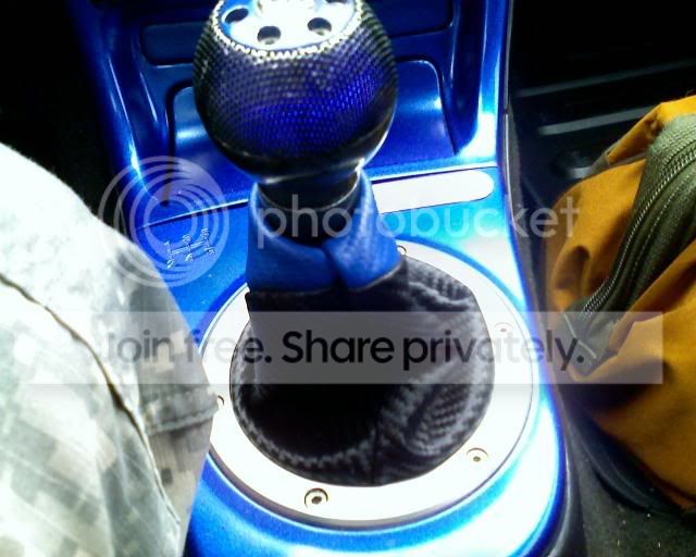 The boot is one of REDZMAN's custom shifter boots. The shift knob is a knob i bought at autozone which origonally ran on batteries. I gutted the 3 battery powered LEDs and added 6 LEDs that go on with the dashboard illumination. I then painted the retainer on top to match the dash.