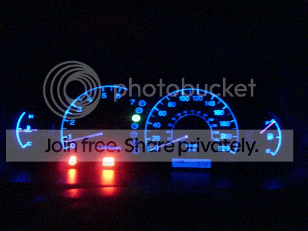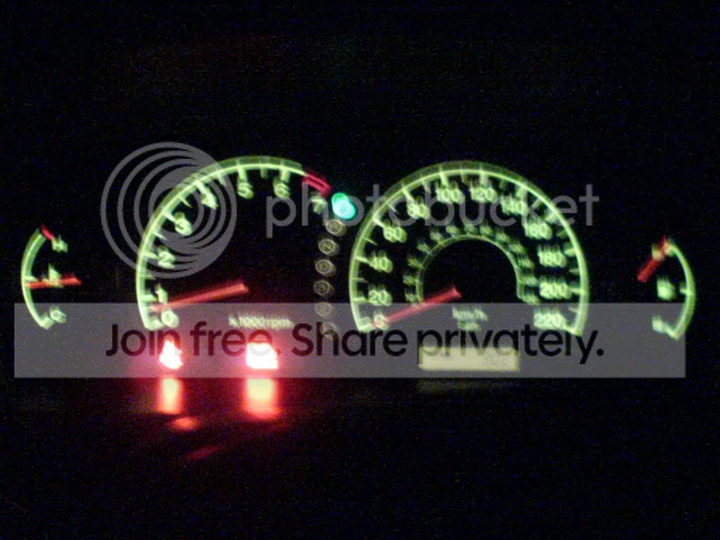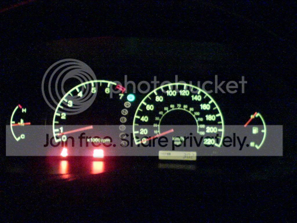 Just a little update. I just installed LED's in the gague cluster. Not too bad for $10 shipped. Sorry about the poor quality pictures, my camera phone sucks, especally at night.