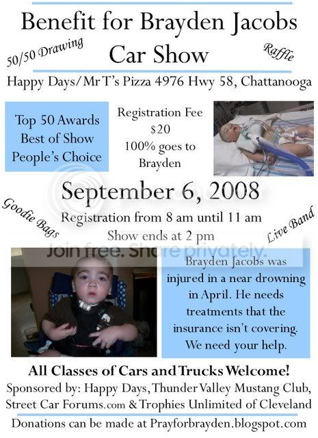 ok ya'll put your feelings about me or this car aside and come to this show this little boy need all of us to help i'll be there and about 50 other cars we need more there to help or go to the blogspot at the bottom of the flyer and help that way thanks
