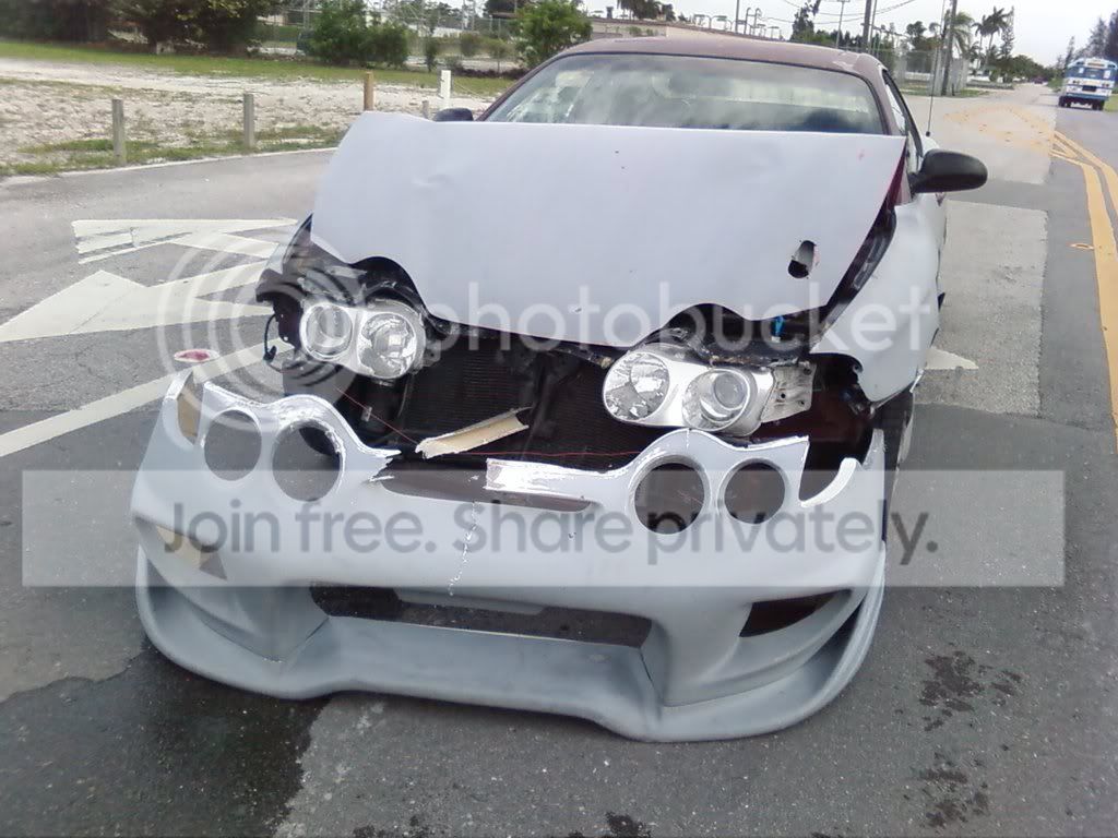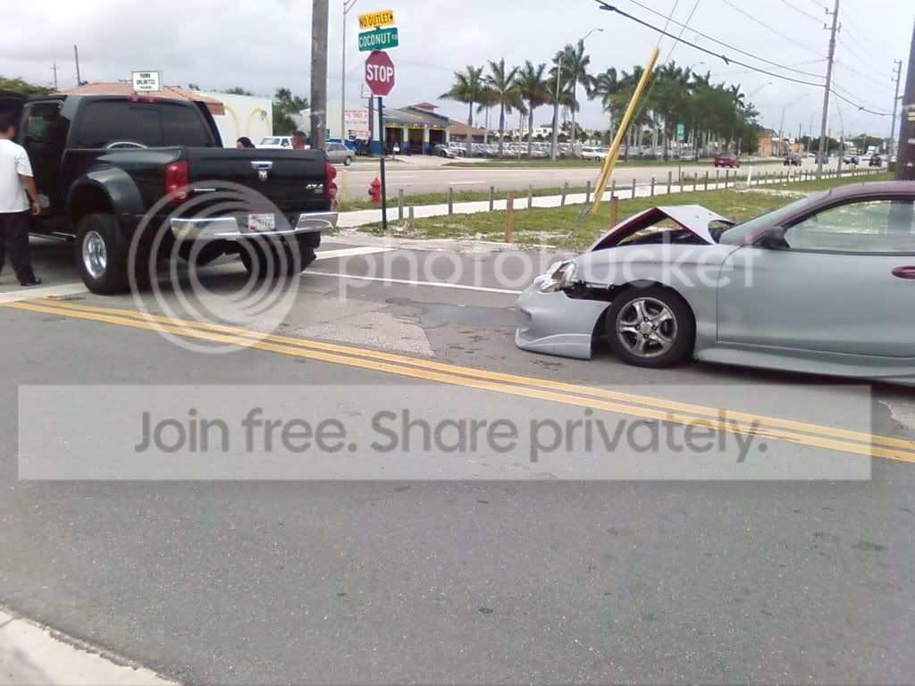 I don't even know how to say much, this is horrible. I just visited the paint shop today to drop my car off tomorrow to get wet. We finished discussing everything around 5:30. I was on my way home from the paint shop and came to a stop sign with a big Dodge Ram Laramie in front of me. I gave him plenty of space between us as we were both in the left turning lane and would have to stop and wait for traffic to clear. I was easily a car length behind the guy. He all of sudden decides he was to eager or wanted to turn around or something and started reversing. Before I knew it a car space distance was gone and the dodge's hitch was eating the radiator...I can't describe much more but no witnesses and I have no clue what will happen insurance wise. I only have coverage for other vehicles on the road, not mine because my insurance rate is skyrocketed due to a DUI from 6 years ago. The cop new there was no way I could have ran into the guy and even gave the guy a hard time when he lied and said I ran into him. She cited no one. This scares me because I won't know if his insurance will pay for it for a little while and I know mine won't. The guy did try to bribe me or payh without police interaction but I told him it was near 2 grand and he looked at me as if he thought 200. I know I can fix it cheap (maybe $400-600) but I just spent a year getting it to this point...I'm so f***in pissed. SO much to think about when you wreck. I know I don't want to go to work tomorrow but I will even if I don't sleep tonight. I was so close to being finished on the looks and had a lot of plans for this cars performance. I do not think I will give up on her. This will be her third life with me.