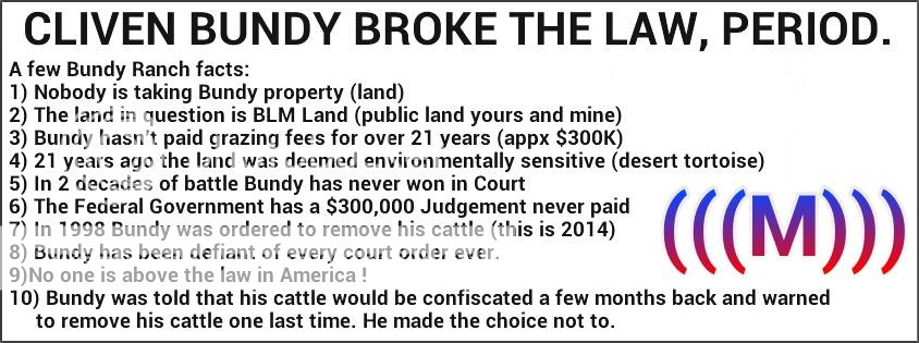 There is no denying that the Bundys have not complied with legal orders. They have gone to court and they've lost. They currently owe somewhere between $300,000 and $1 million in grazing fees depending on who you ask. The validity of the entire system is questionable, but they have certainly been breaking the law as it stands and disregarding court orders.