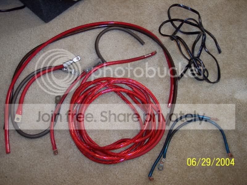 Wiring kit with 4 gauge power, ground and speaker wiring.