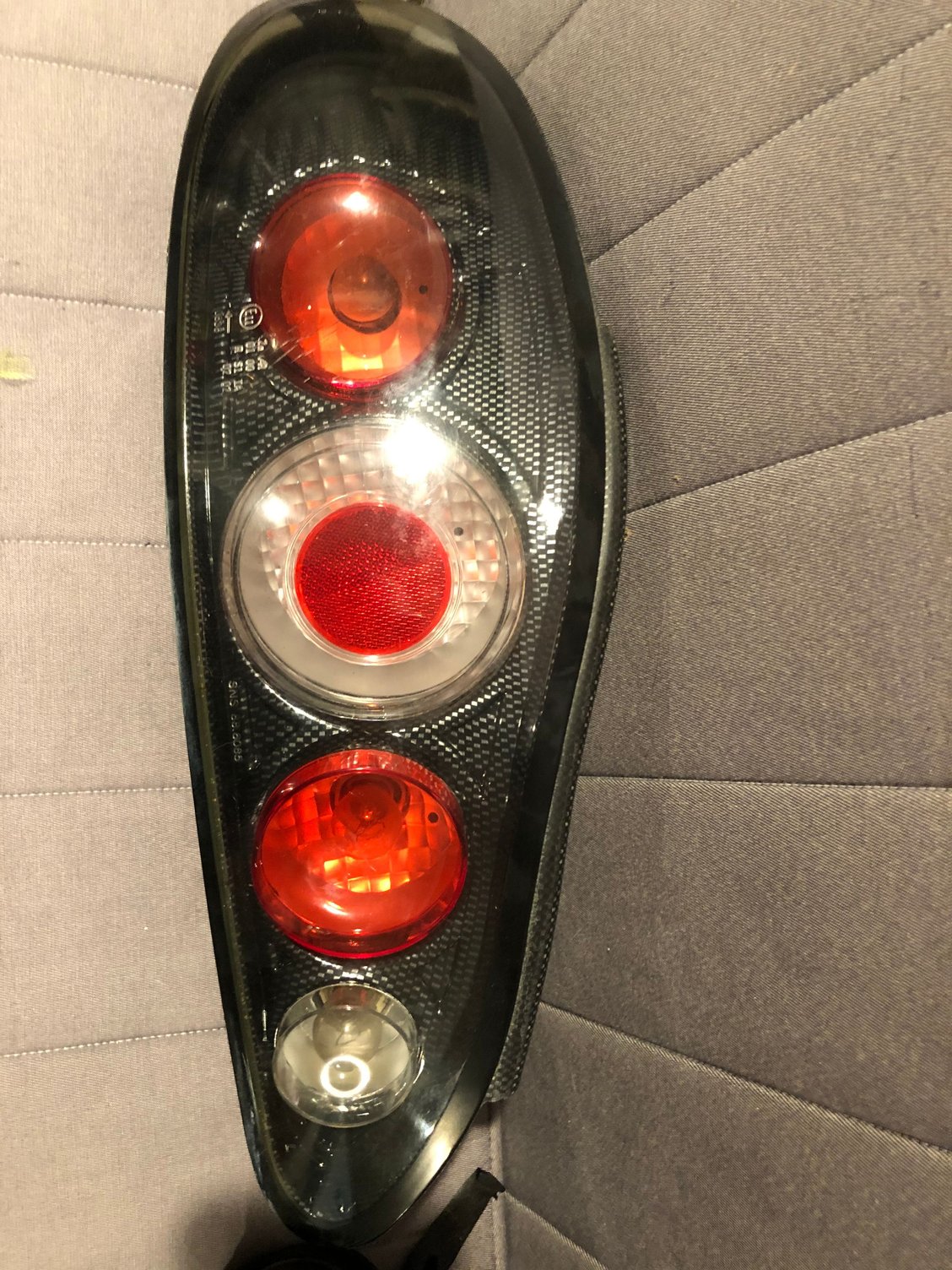 Used 97-99 Tiburon Altezza taillights. Carbon fiber addition. Has a few scratches and could use a quick clean up. Still worked when taking them off the Tib a few years back