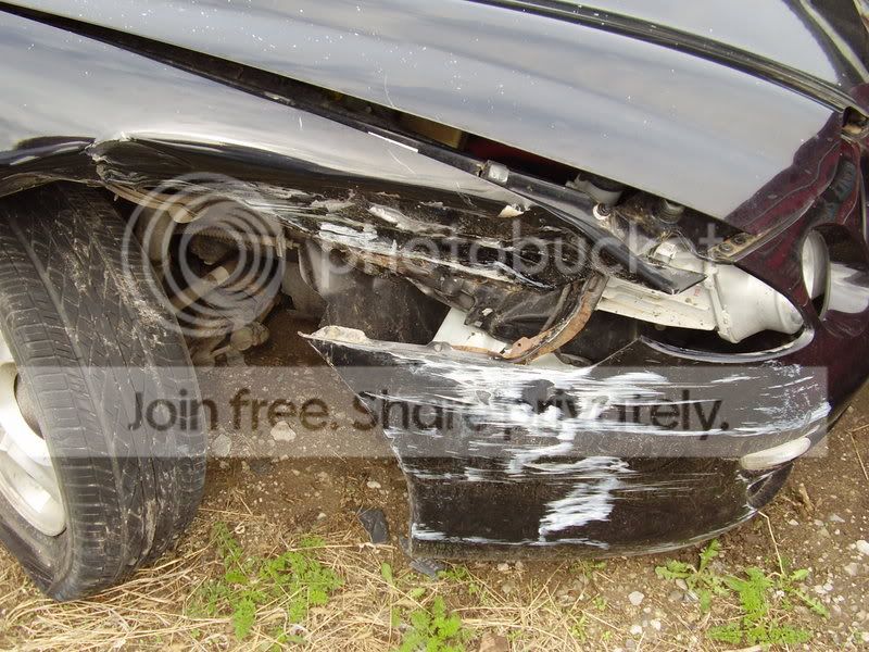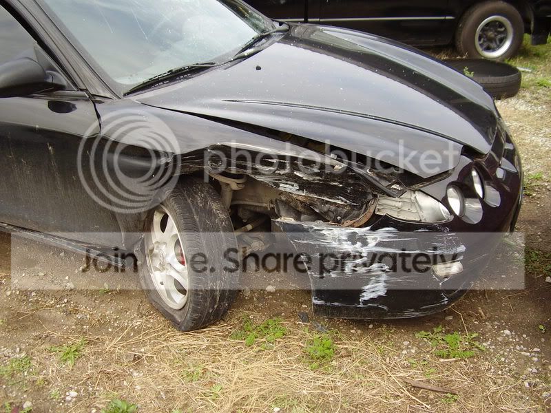 first off... some pics of the wrecked tibby and the story. I was leaving work and going through the parking lot and looked over to my right to check for traffic crossing the lot (people fly through the spaces since it is usually all open) and when i looked back up i saw the pole for a split second and then boom. It put my head into the windshield (wear your seatbelt... even in parking lots) and totaled the car. I will say again... wear your seatbelt. I wear mine every time im on the road but i usually dont put it on after work until im almost to the road... i just hadn't quite made it that far.