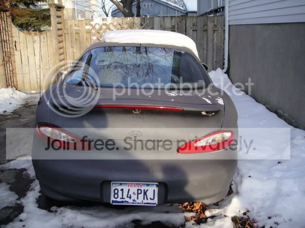 I am in London, Ontario, Canada. The car is a 1998 hyundai tiburon. Automatic tran and 116k miles on the engine. Originally white but now in primer. Primer is peeling off the hatch because I rushed the hatch and it wasn't prepped properly.