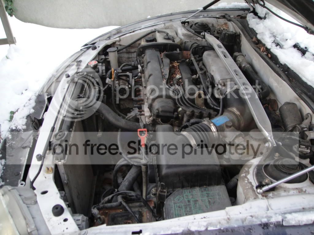 It is in parts car condition. I took the battery, alternator, crank sensor, cai, exhaust and oil pan from it. Stock exhaust is inside the car and I still have the oil pan it just has been tapped for an oil return line. The car is still in primer.