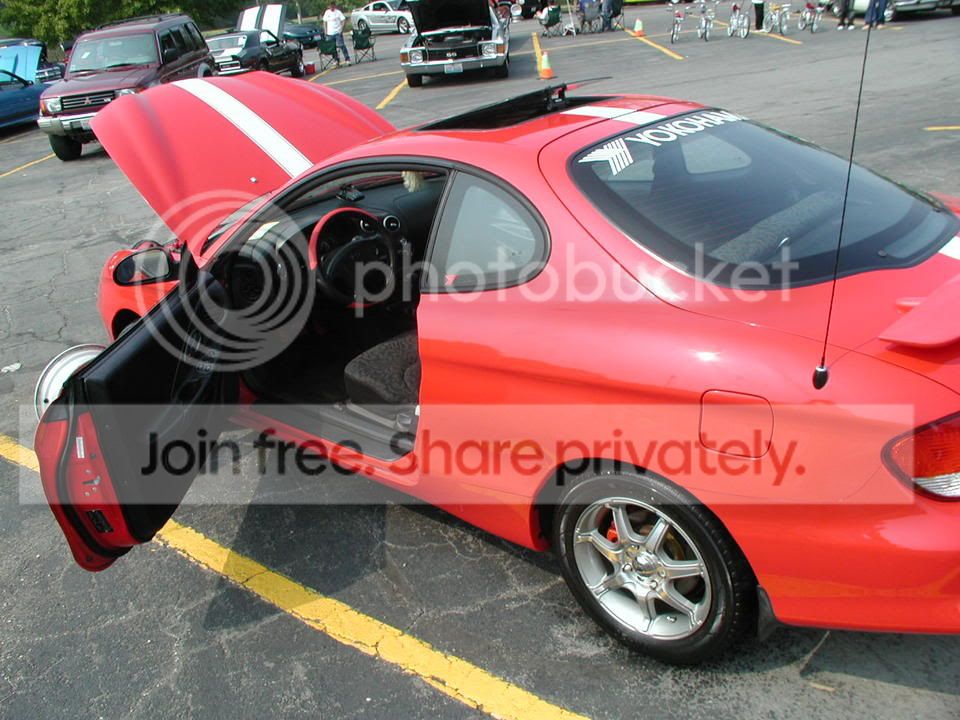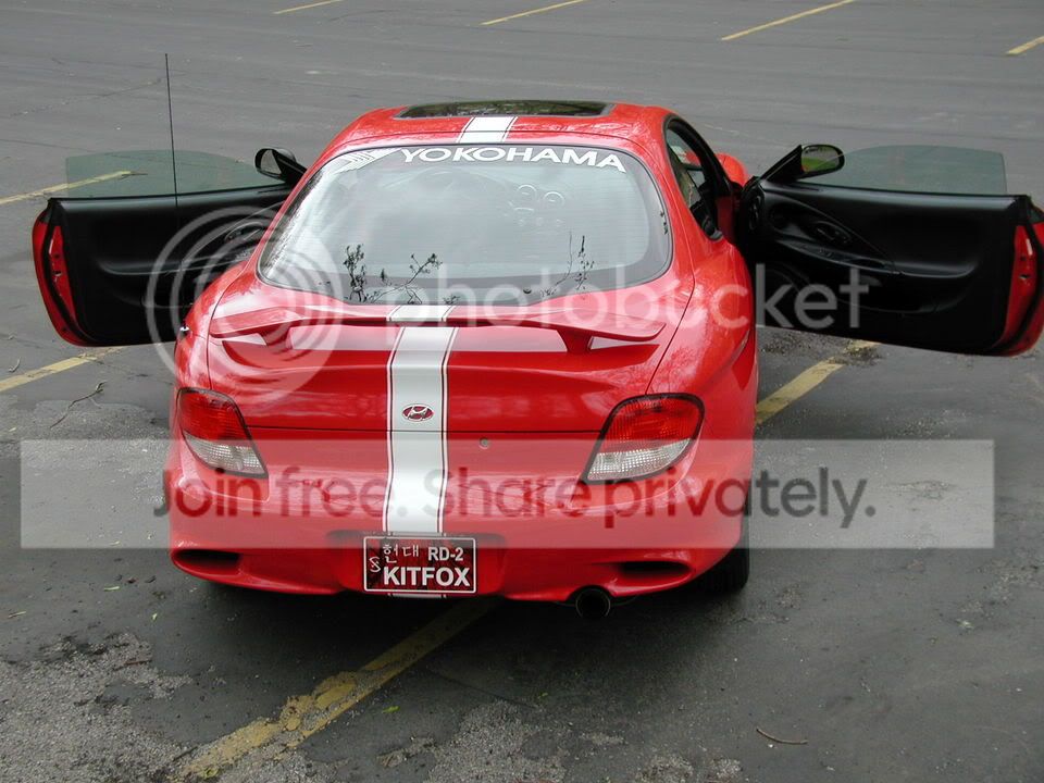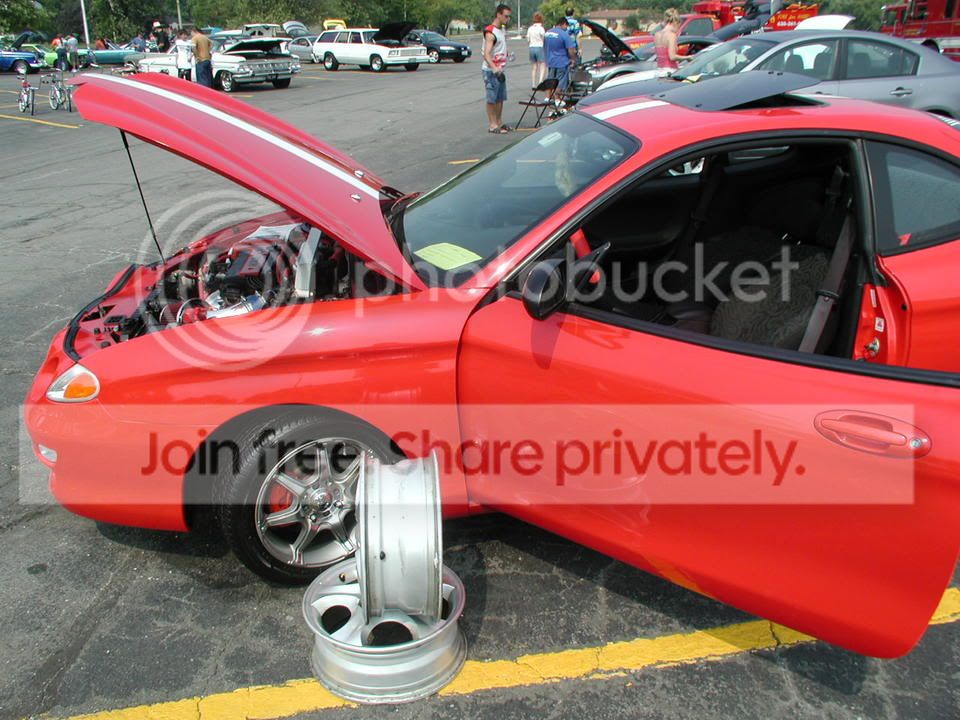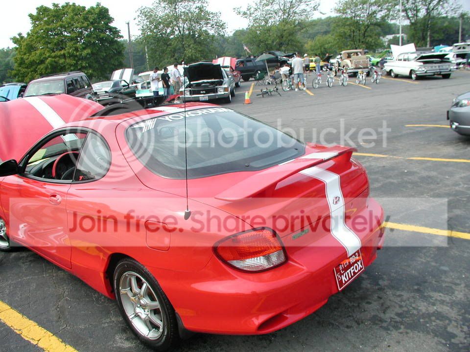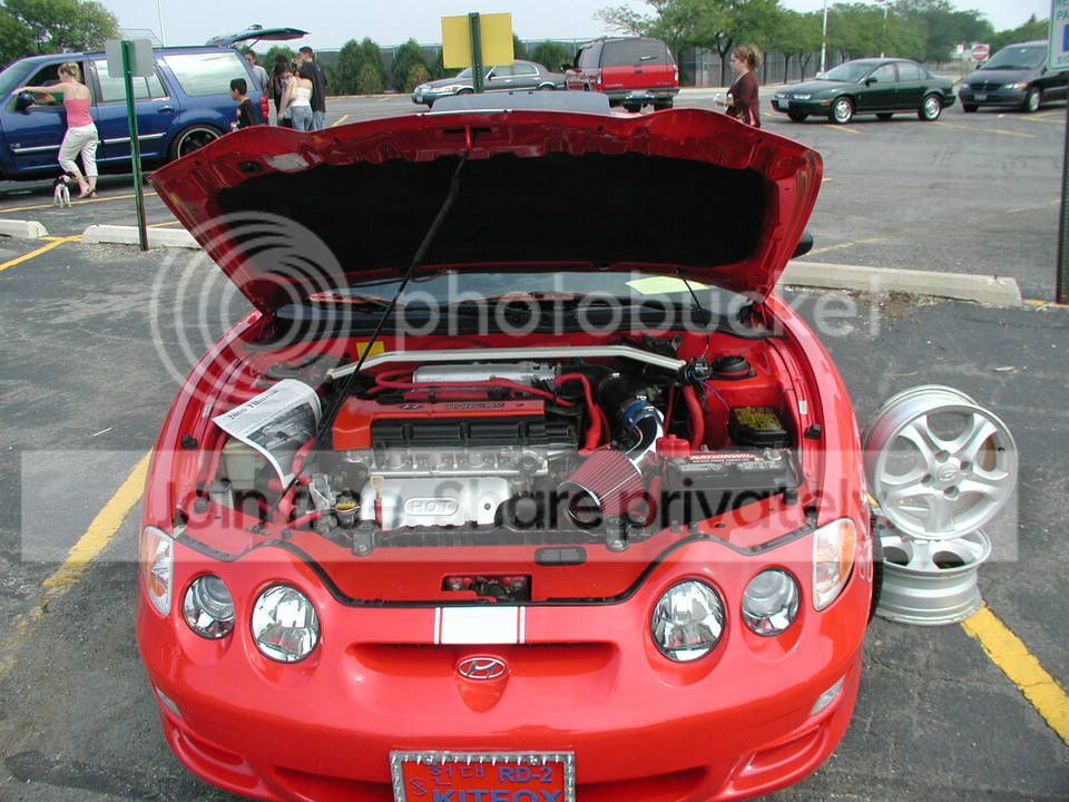 <div class='quotetop'>QUOTE (Kit Fox @ Oct 15 2005, 11:07 PM) <{POST_SNAPBACK}></div><div class='quotemain'>As the title says, its an 2000 Hyundai Tiburon, ask what you would like and I will be glad to give you the information. Starting price is $7,300, but trust me thats bargainable, by a good amount also....gimme a good reason and the price will go down. I will not deliver the car past a tri-state distance. I'm in Illinois, otherwise your gonna have to pick it up yourself. Feel free to look at pics. Mods are in the garage area. Feel free to contact me by pm'ing me or call