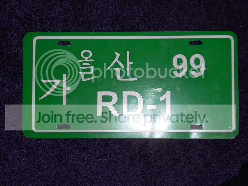 Guys I'm selling my custom Korean style license plate that I had made by a member here a few years ago. I 'd use it anymore and forgot I even had it. It's specific to my car though, as it says 99 and RD1. So it would only make sense if you have a 99 RD1. I only had it sitting in my windshield for a short period of time. Asking $20 shipped for it, I believe it was $25ish brand new.