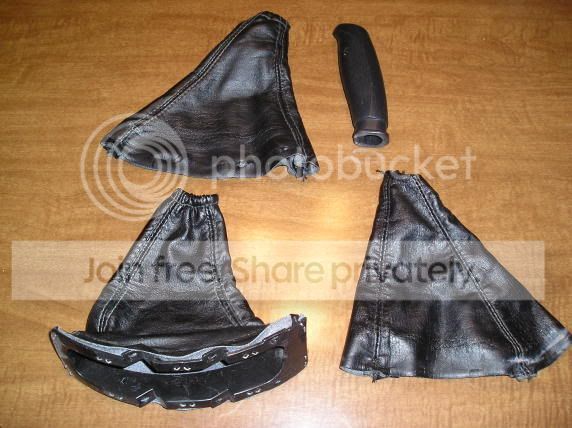 There's 2 ebrake boots, 1 shift boot and 1 stock ebrake handle pictured here. $10 shipped for each piece, I'll make you a deal if you need more than one item here.