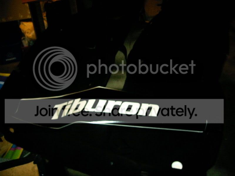 I have a Gloss black Tiburon decal for sale. It's for the rear window but can be tossed on the front aswell.