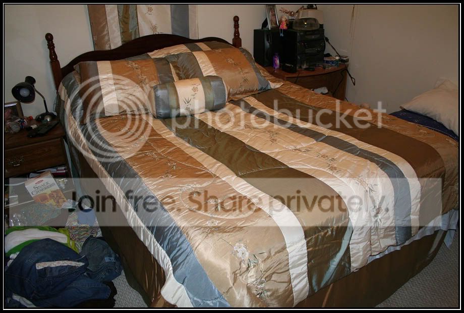 Includes: Queen Mattress, Queen Box Springs, Frame, Headboard, Queen Comforter, 3 Decorative Pillows, 2 Decorative Curtains.