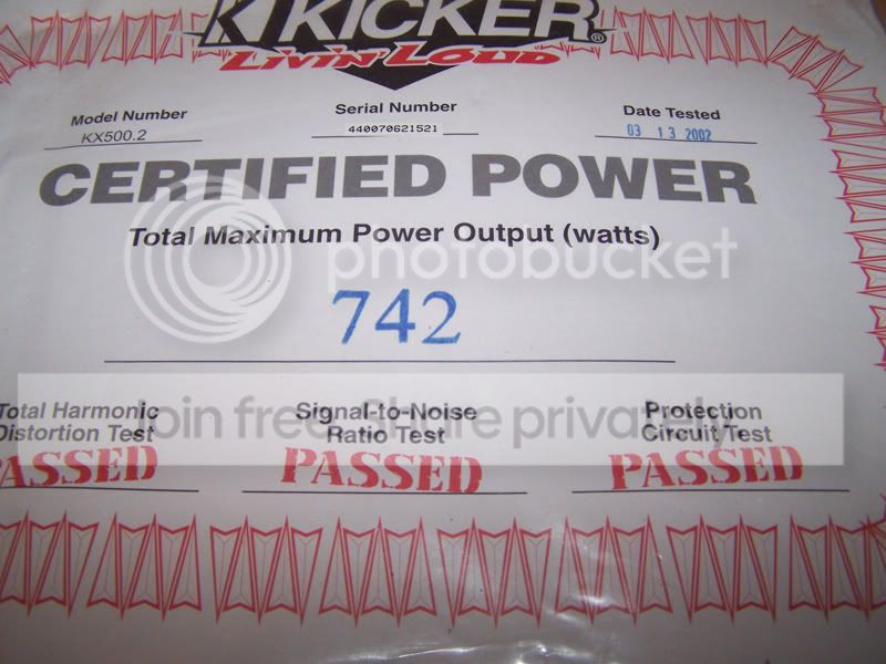 Alright this is now FOR SALE (If anyone wants to change the thread title). My friend at the local Audio Shop hooked it up to his 2 kicker Comps and it works great. Like I said before, this has less than a year's use, was taken very good care of, and looks brand new minus 2 small white scratches on the top (shown in picture 4) This is a very nice amp and I'm asking $225 OBO.
