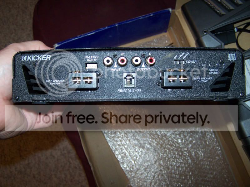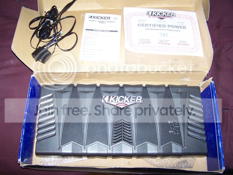 This is my Kicker amp that I've had in storage for a long time, it was only used for about a year or less, and is still in great shape (the box is just beat up). It's been in my closet ever since, so I'm taking it to a local shop today to get it tested to make sure it still works before I sell it to anyone (since I no longer have the wiring hooked up).